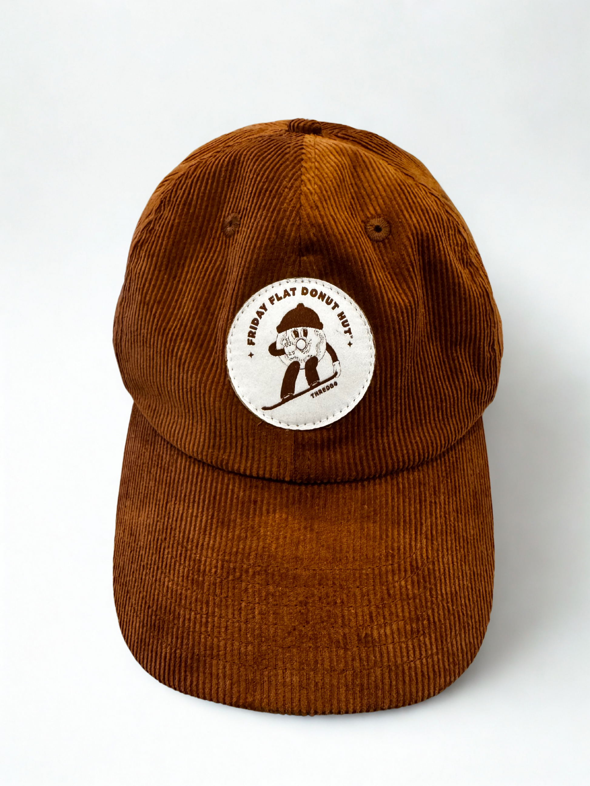 This brown baseball cap is made from soft, durable corduroy fabric for a unique, textured look. It features a classic six-panel design, a curved brim for sun protection, and an adjustable strap at the back for a customisable fit.